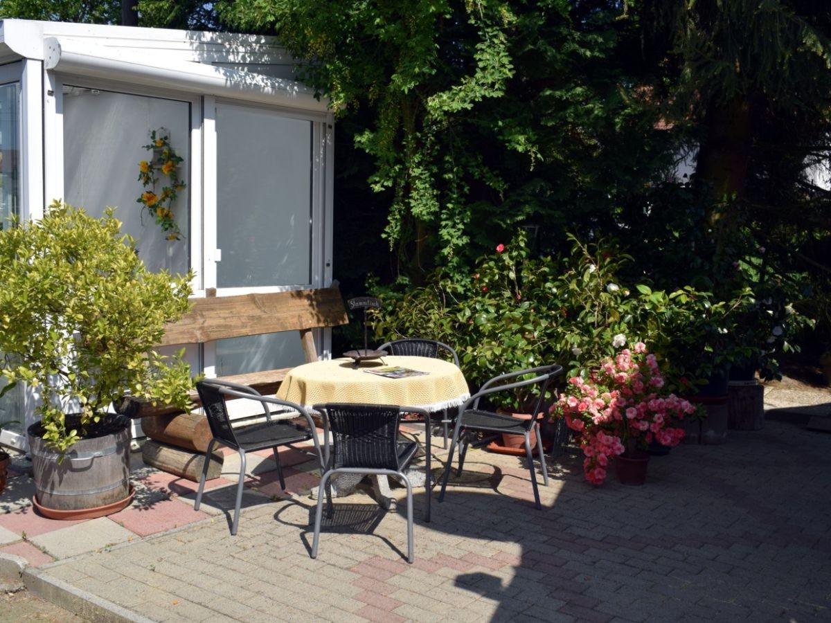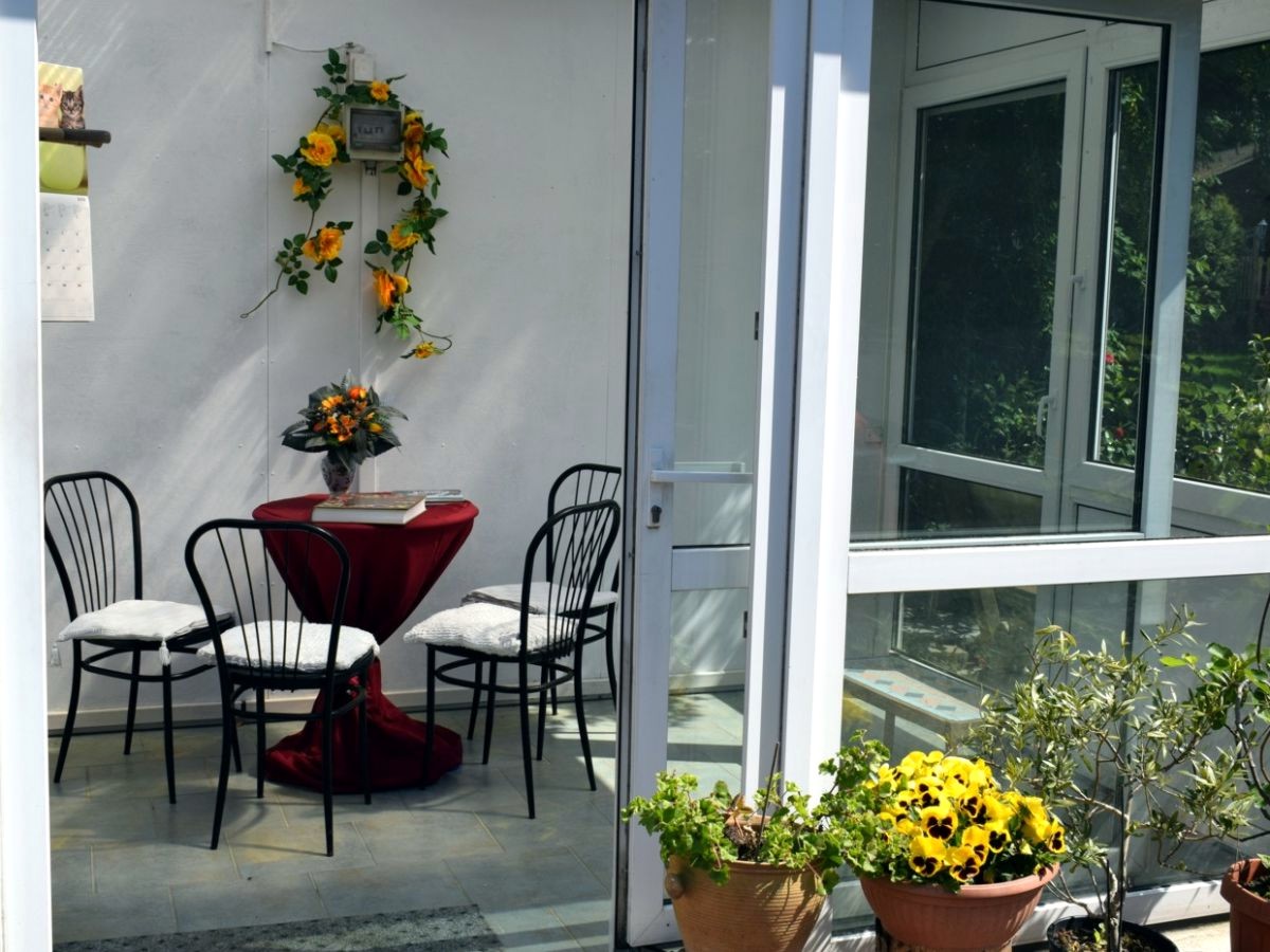 Es gibt einen kleinen Wintergarten und eine Sitzecke